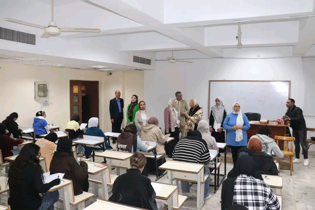 وفي هذا الإطار، أجرت الأستاذة الدكتورة ثريا أحمد البدوي، عميدة الكلية، والأستاذة الدكتورة هناء فاروق، وكيلة الكلية لشؤون التعليم والطلاب، جولة تفقدية داخل لجان الامتحانات لمتابعة انتظام سير العملية الامتحانية والاطمئنان على توافر الأجواء الملائمة للطلاب، بما يضمن أداء الامتحانات بسلاسة ودون أية معوقات، مع التأكيد على الالتزام الكامل بالتعليمات المنظمة وقواعد الانضباط داخل اللجان.