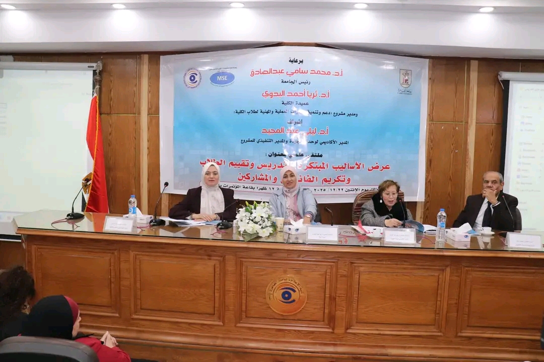 «عرض الأساليب المبتكرة للتدريس وتقييم الطلاب (الفائزين والمشاركين)»، وذلك بقاعة المؤتمرات بالكلية في تمام الساعة الثانية عشرة ظهرًا، في إطار مشروع دعم وتنمية المهارات العملية والمهنية لطلاب الكلية.